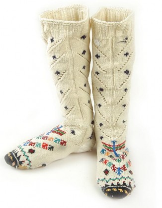 renkli desenli el örgüsü uzun çorap örnekleri