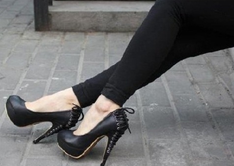 siyah topuğu bağcıklı modern ayakkabı örnekleri